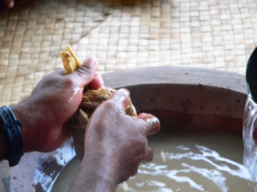 the drain the water through the cloth of powdered yagona root
