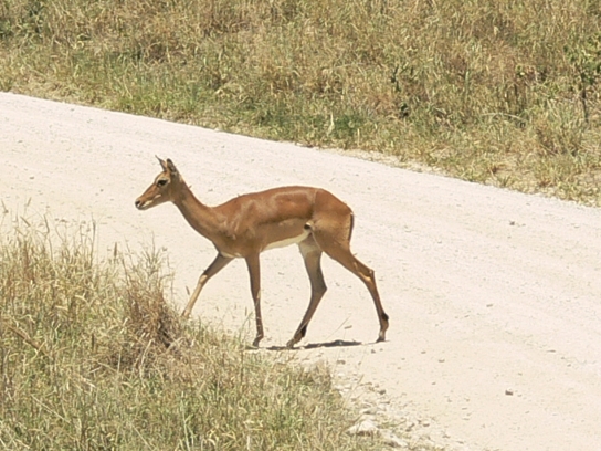 a young impala follows its mother