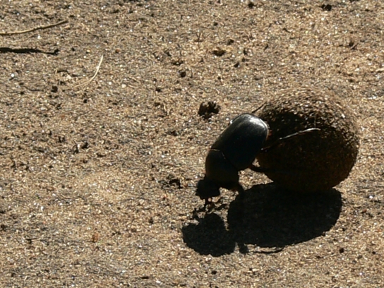 The larvae feeds on the undigested plant fiber in the dung
