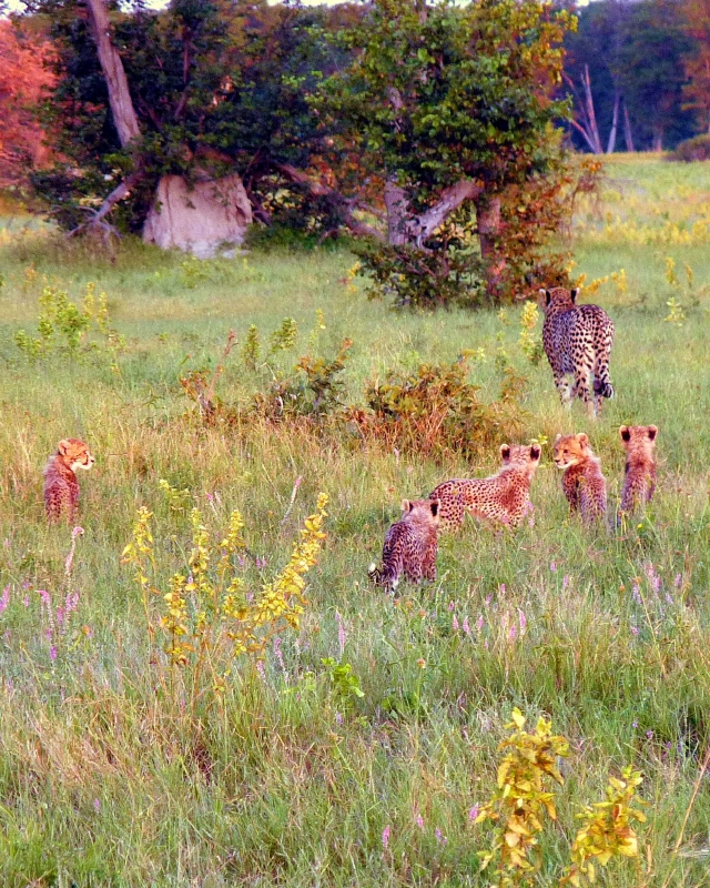 Cheetah Cubs follow Mom