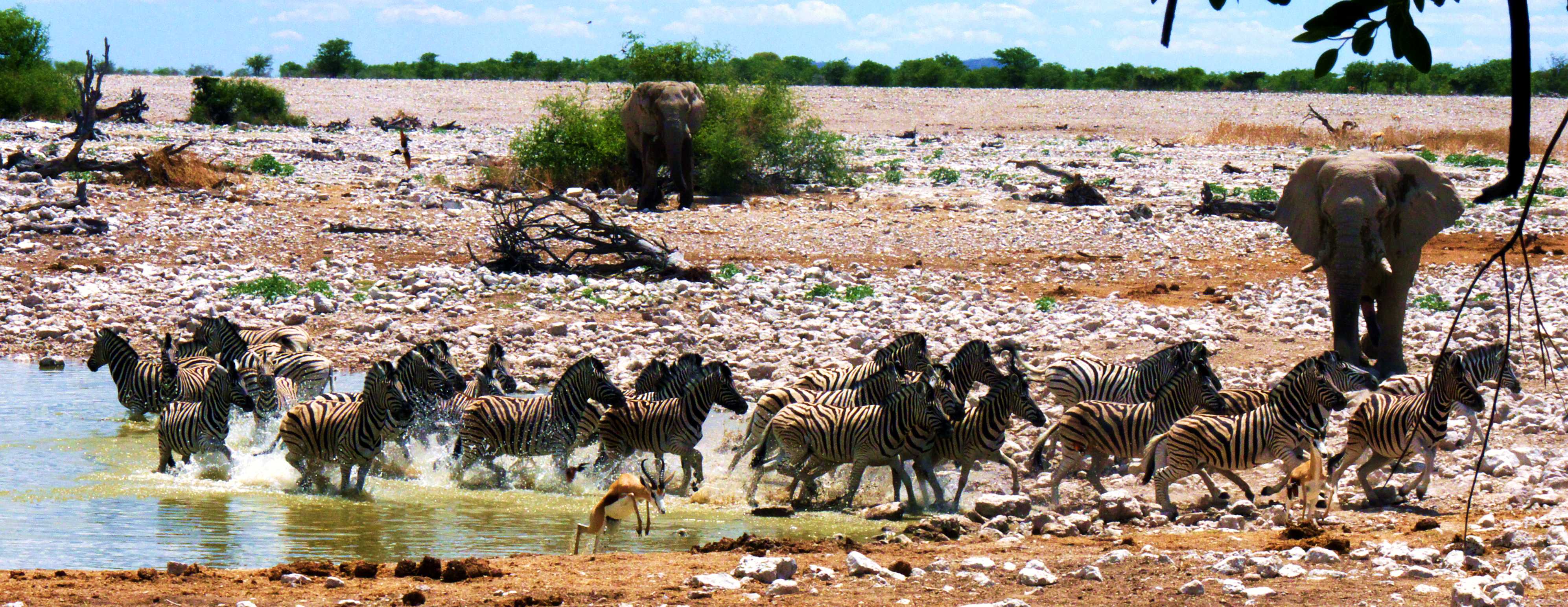 Etosha zebras stampede at Okaukuejo waterhole