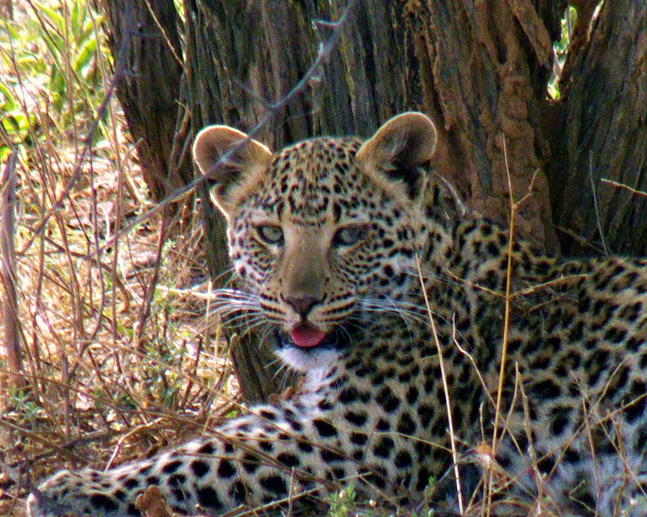 Leopard cub under tree