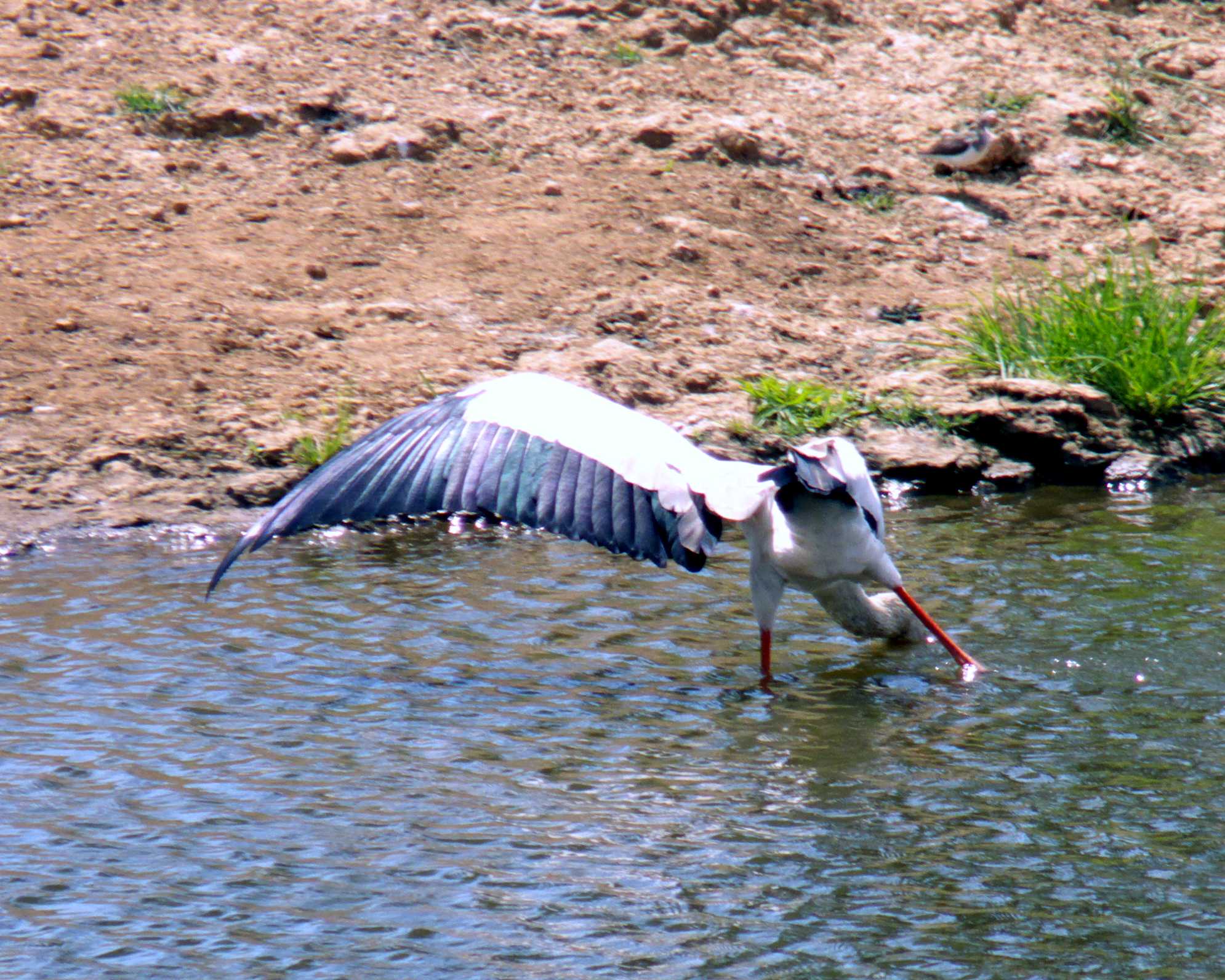Yellow-billed stork fishing