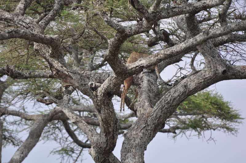 Leopard in Tree with Kill
