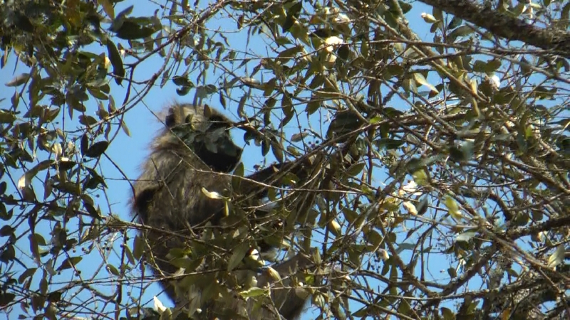 Baboon Looking for Food in the Trees