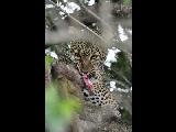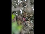 Leopard in a Tree with a Kill