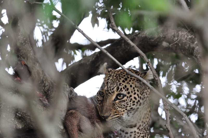 Leopard in a Tree with a Kill