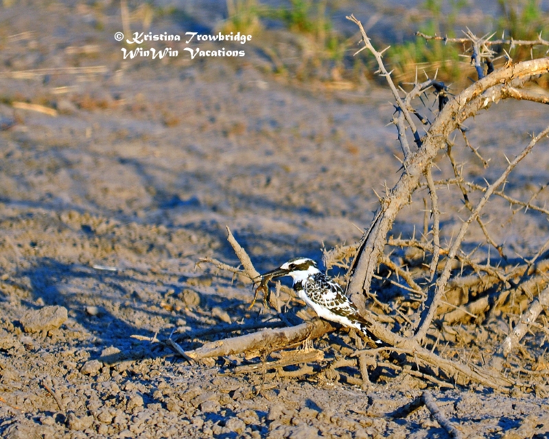 Pied Kingfisher with frog kill