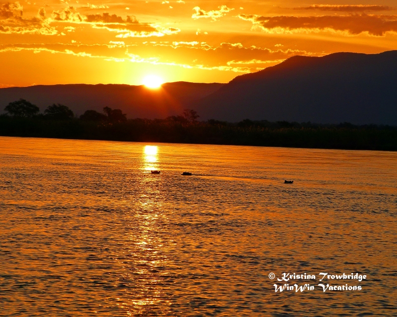 hippos in the sunset