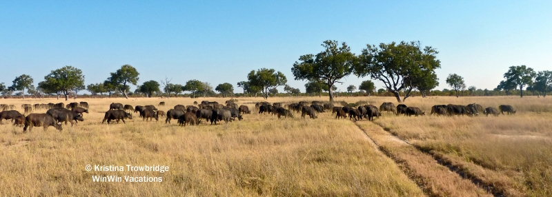At least a 1000 buffalo crossing the road to Somalisa