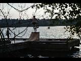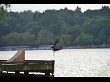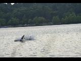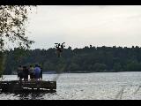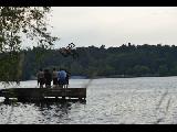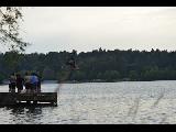 Greenlake bikers jumping off a ramp into the lake