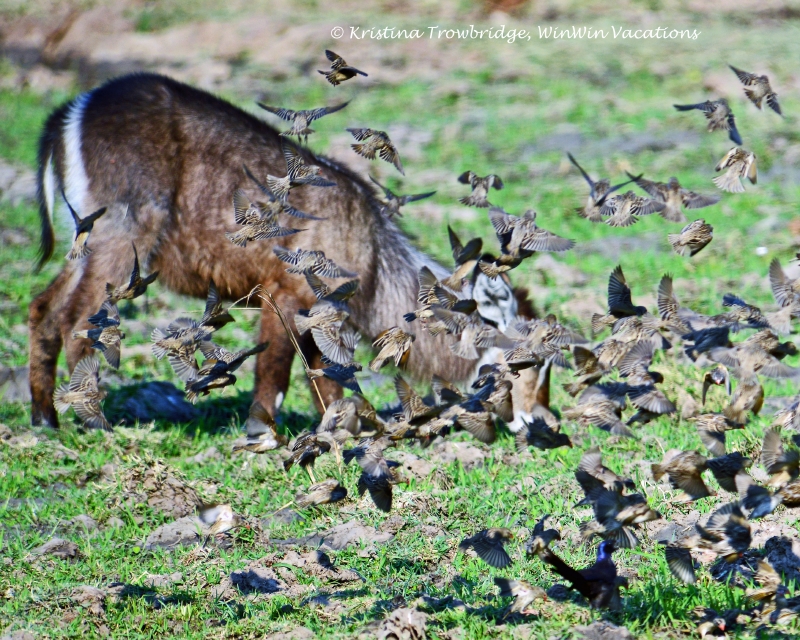 Waterbuck and Red-billed Quelea