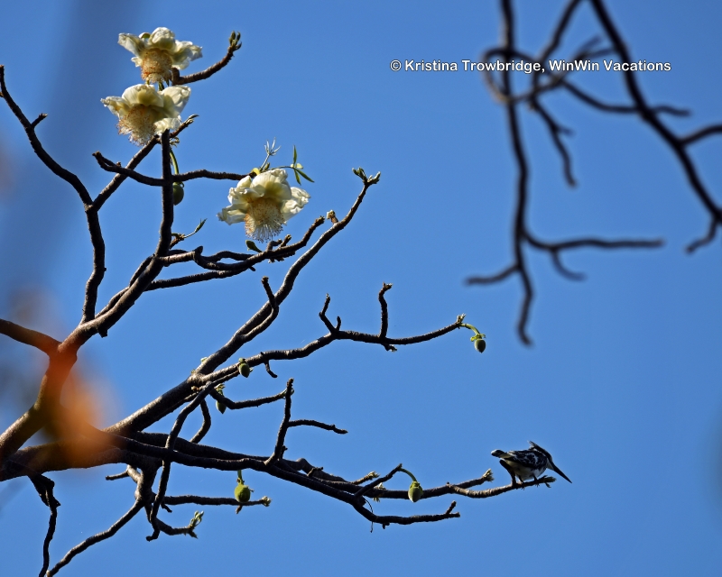 Pied Kingfisher on Baobab Tree