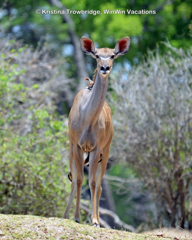 female kudu with oxpeckers