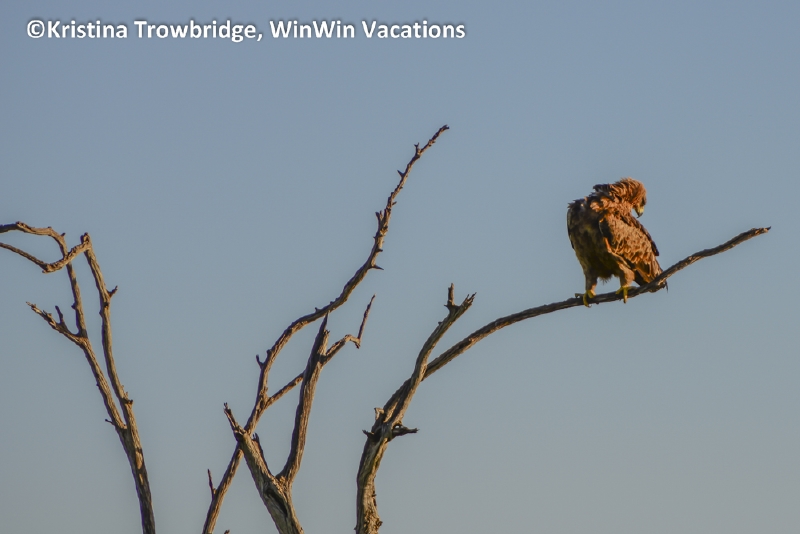 Tawny eagle at sunset
