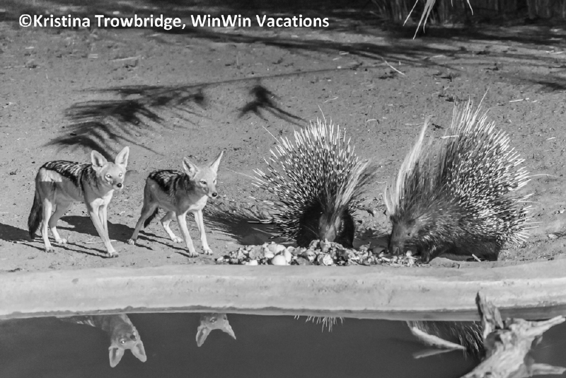 Black-backed Jackals & Porcupines at the Bush Restaurant