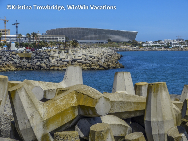 Cape Town Soccer Stadium behind breakwater dolos