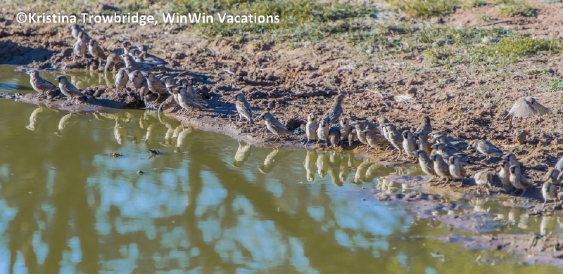 Scaly-feathered finches drinking