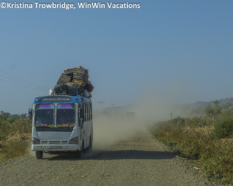 Bus kicks up dust