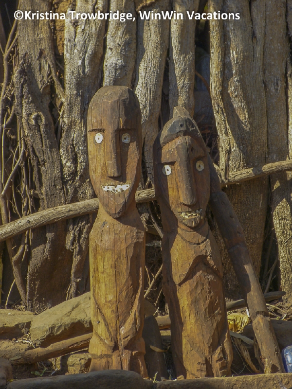 Wooden grave marker statues
