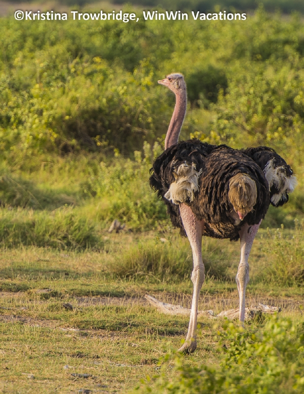 Male ostrich in heat at sunset