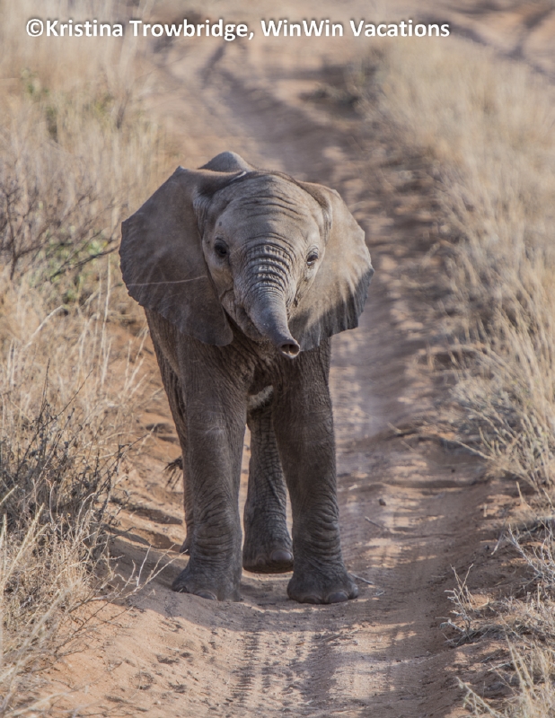 Baby elephant calf with an attitude, Samburu National Reserve