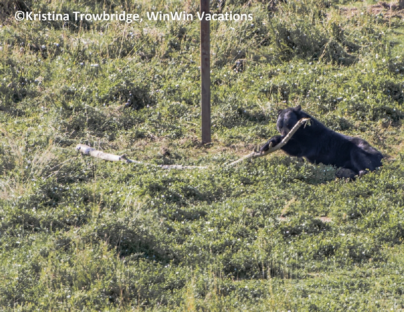 Black bear with a stick