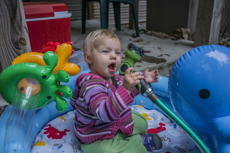 Exploring pool with grandpa