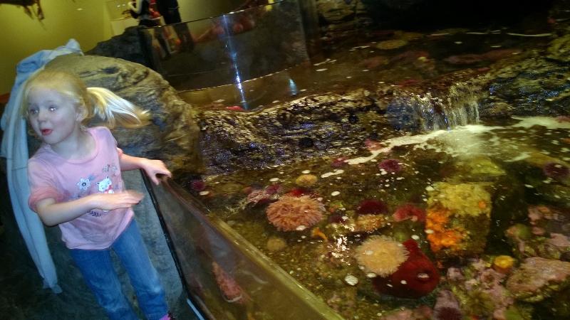 Anna got wet at the touch tank