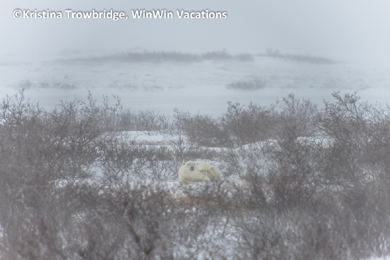 Bear resting in snow storm