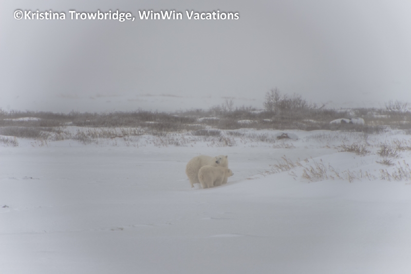 Mom and cub in snow storm