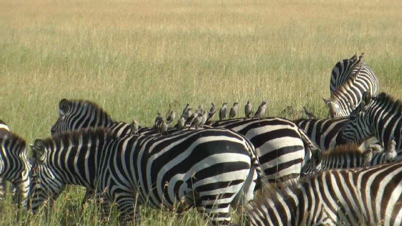 Zebra with Wattled Sstarling