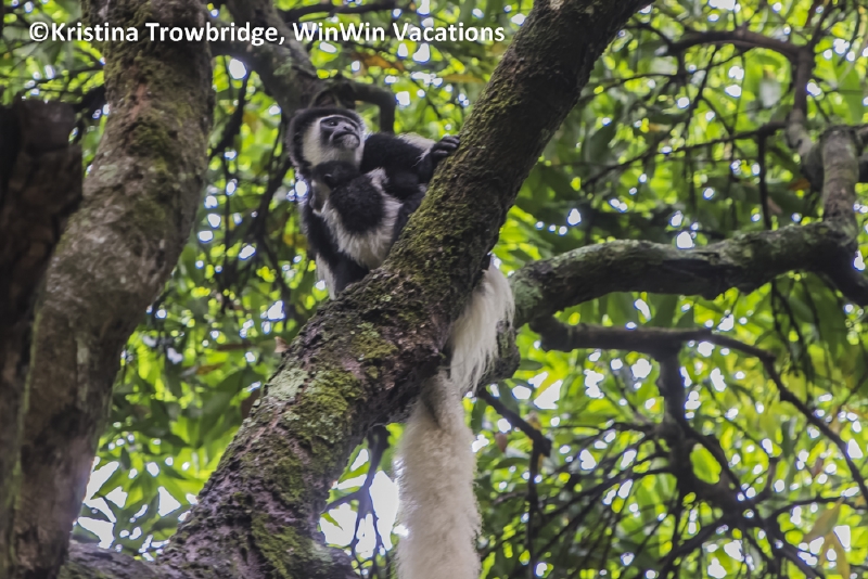 Black and White Colobus Monkey with baby