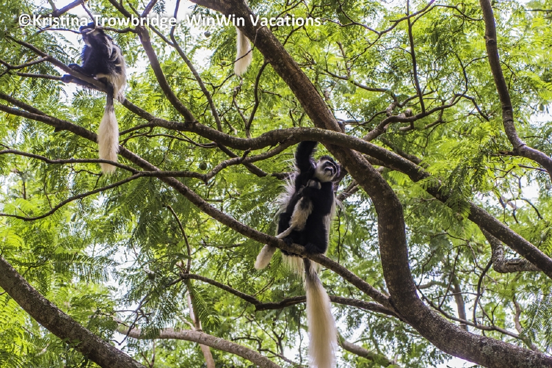 Black and White Colobus Monkey with baby