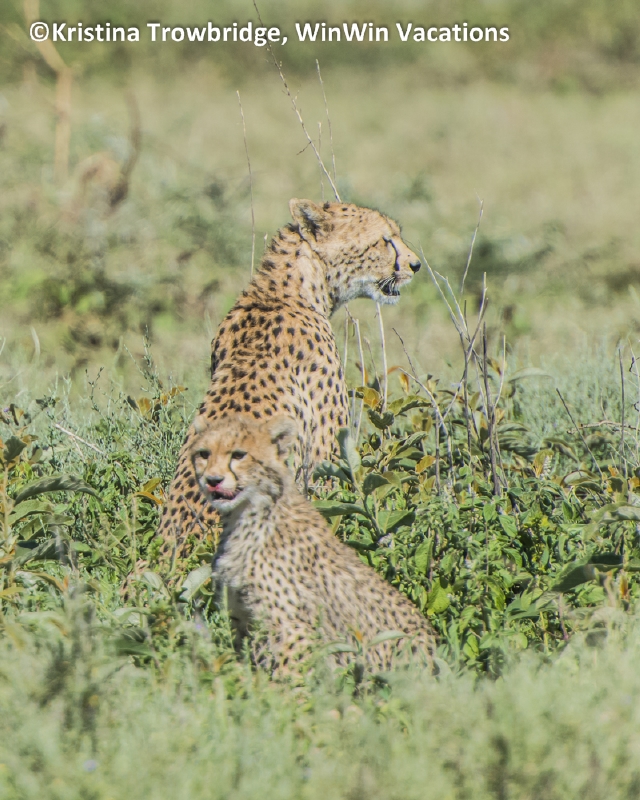 Cheetah mom and cub with bloody face