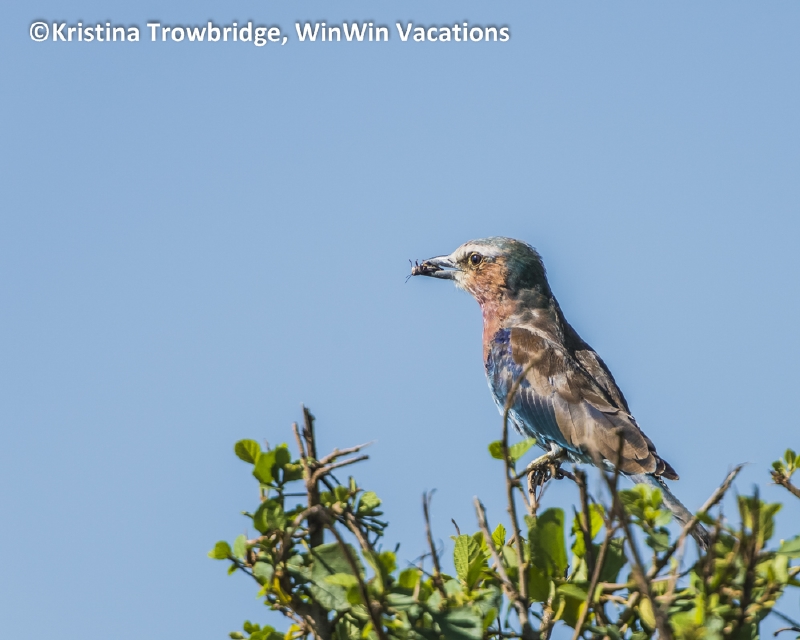 Lilac-breasted Roller with grasshopper