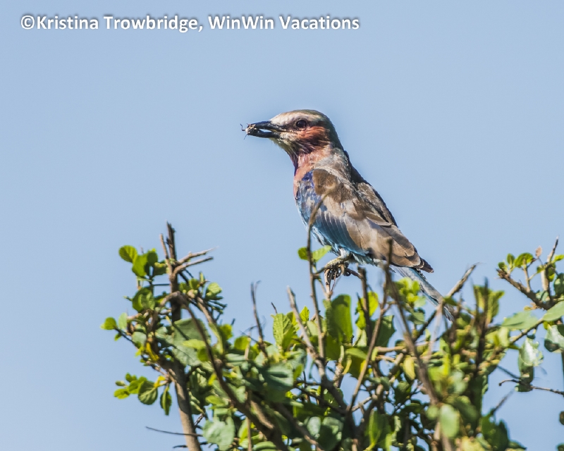 Lilac-breasted Roller with grasshopper