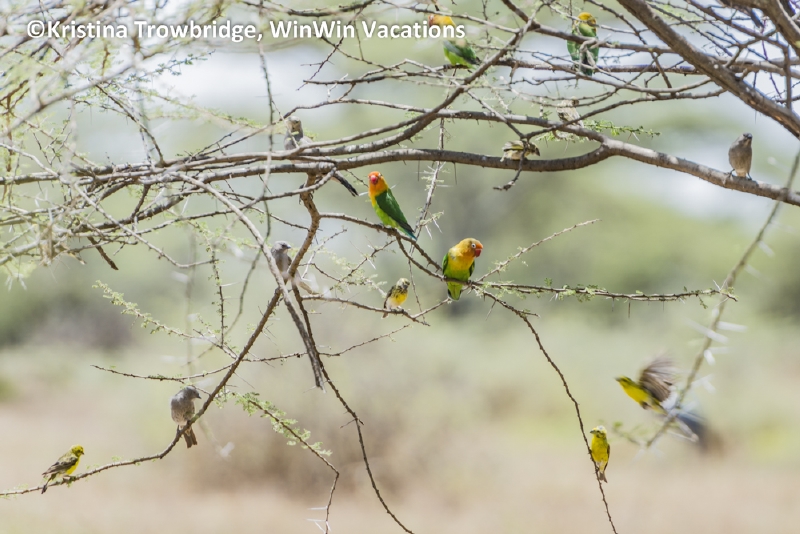 Fischer's Lovebirds & weavers