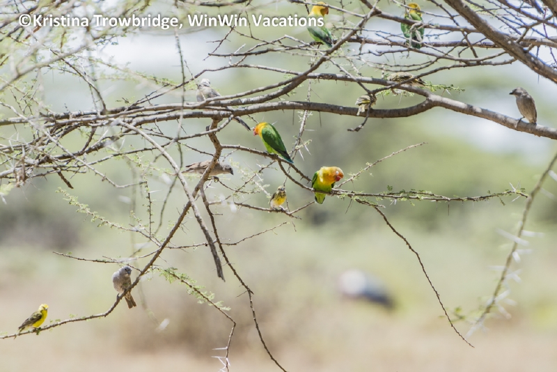 Fischer's Lovebirds & weavers