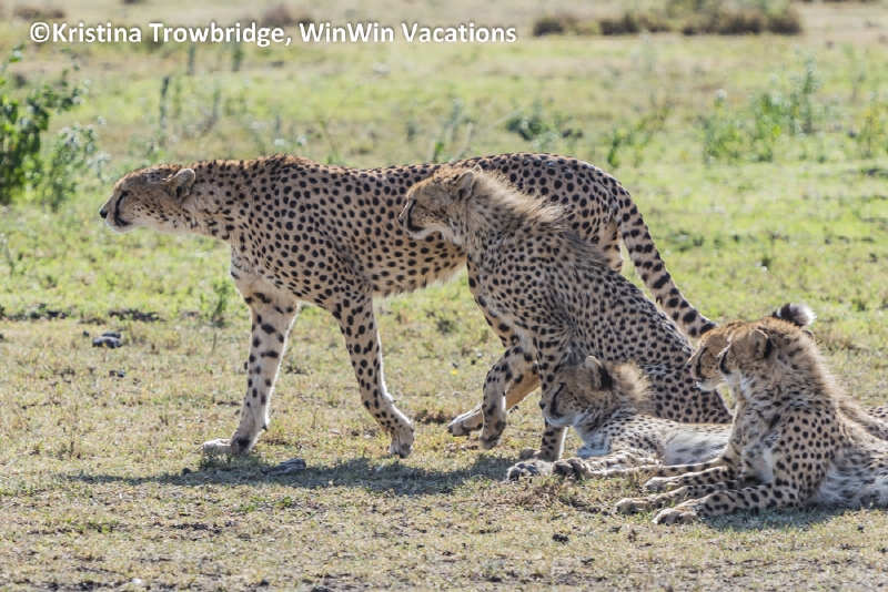 Mom and 4 cheetah cubs stalking