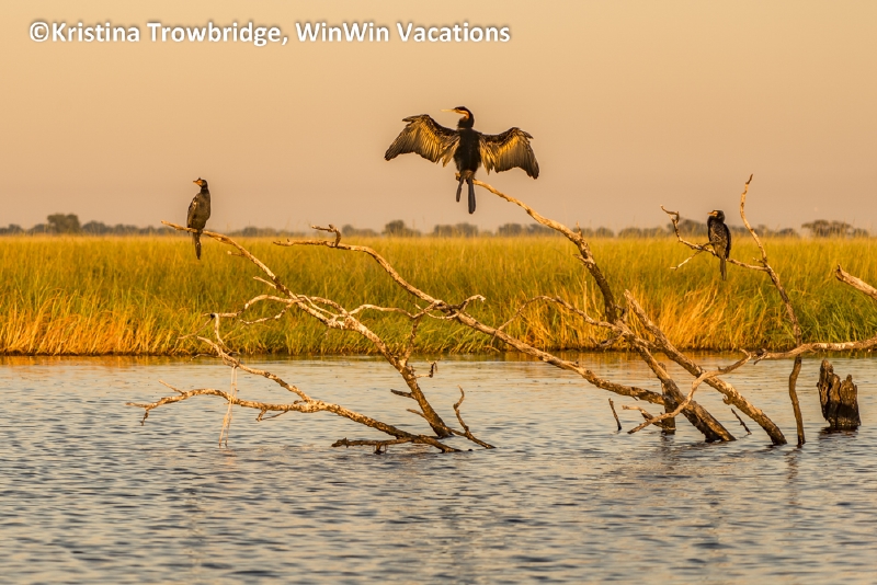 African darters at sunrise