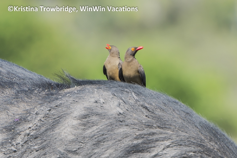 Red-billed oxpeckers on buffalo