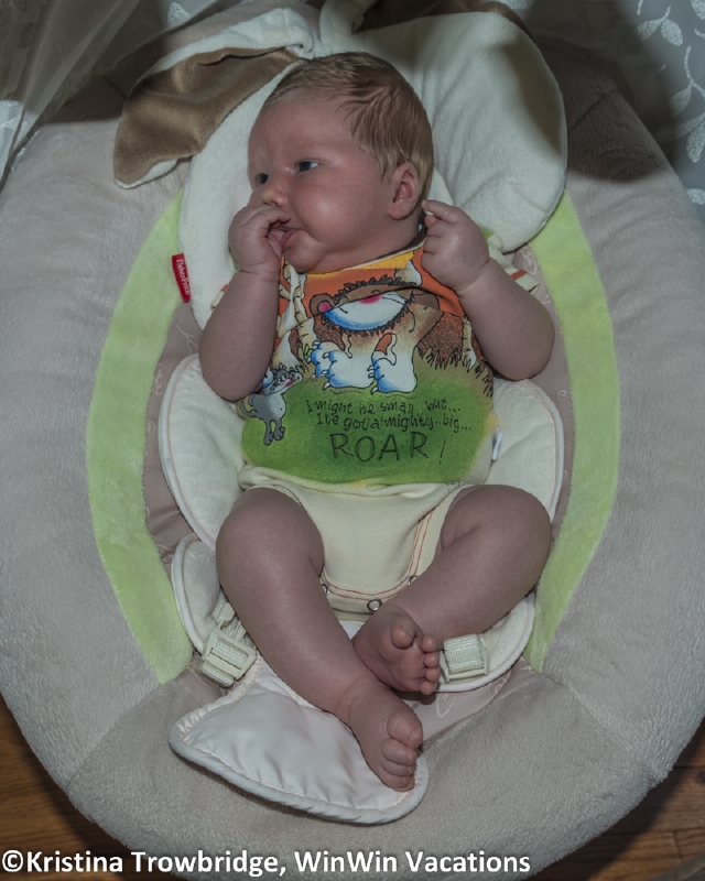 Roaring baby Silas sucking his thumb