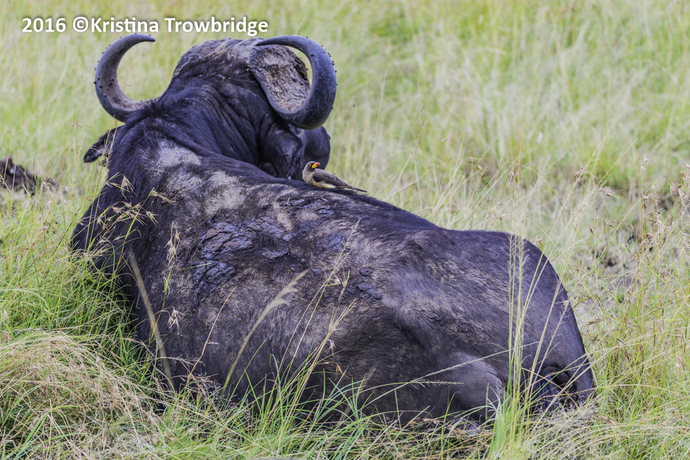 Cape buffalo with oxpecker