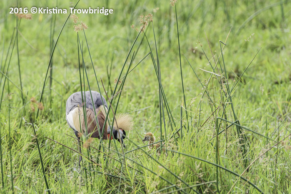 Grey Crowned Crane and chick
