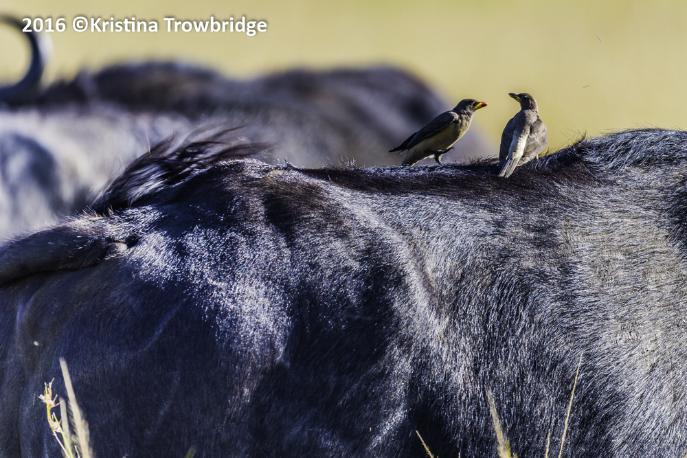 Oxpecker & Starling on back of buffalo