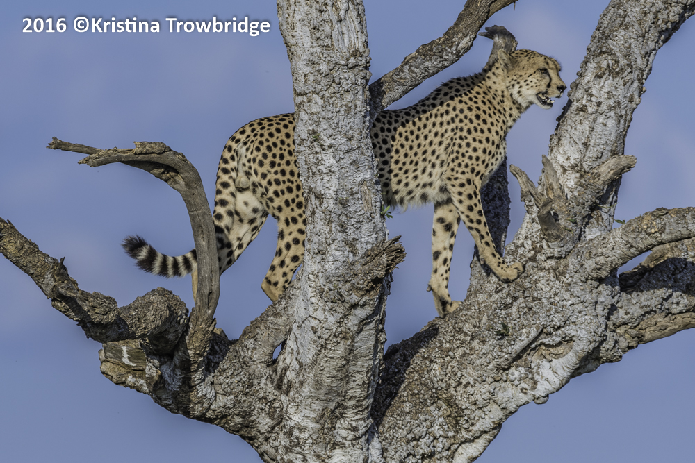 Oloololo Male Cheetah up a tree CALLING