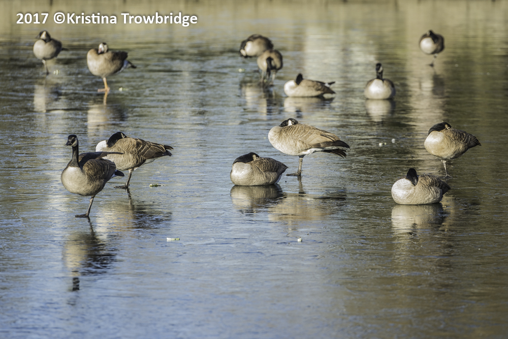 Canada geese on ice