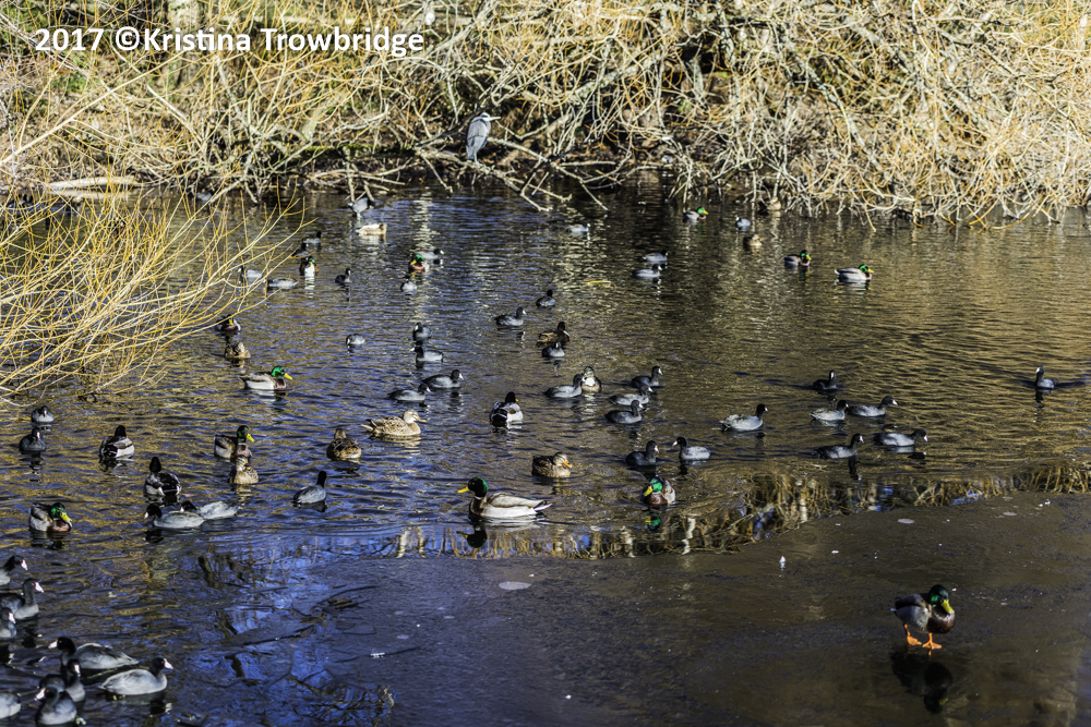 Heron, Ducks & Coots in bright sunlight