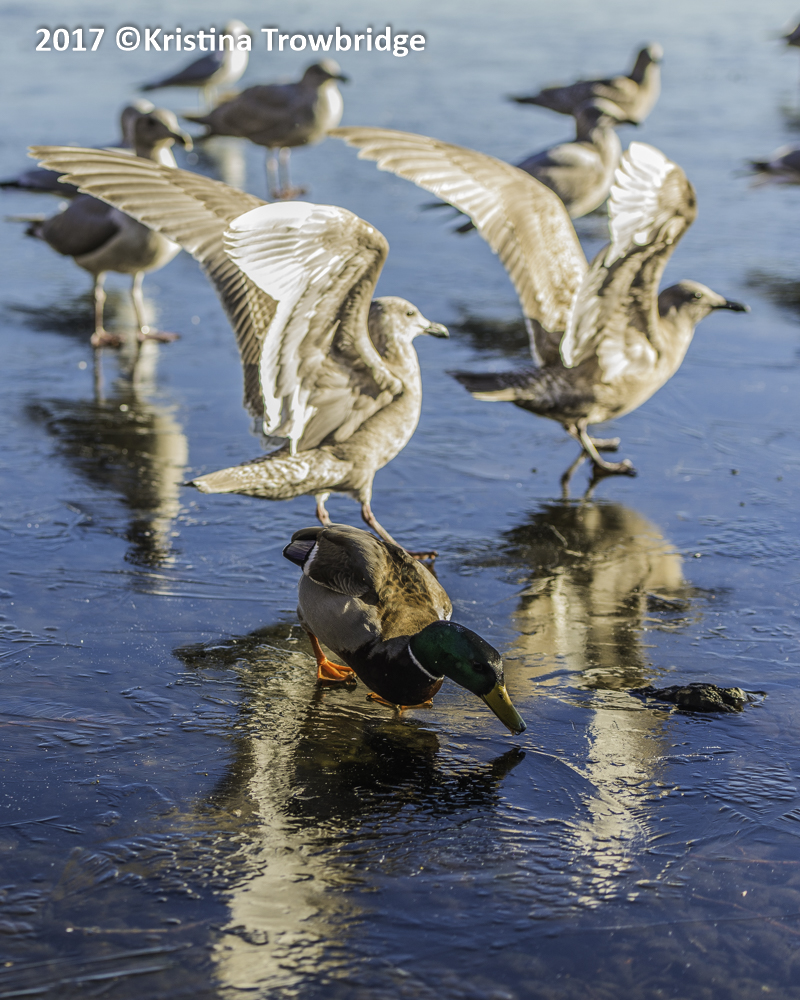 Mallard & Glaucous-winged gulls on ice